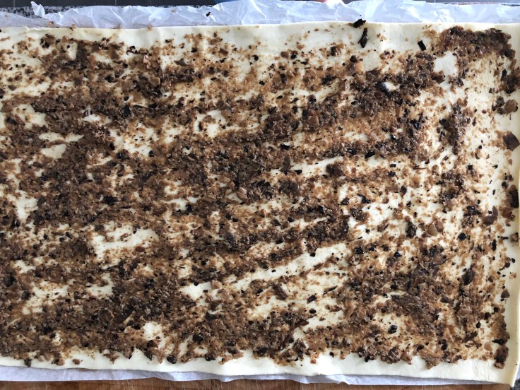 I can’t believe I haven’t been preparing this so much earlier. One of the most simple yet delicious appetizers that are prepared in no time! You only need a square sheet of puff pastry and a spread of your choice (I happened to have Funghi Porcini & truffles spread in the house). And you are just about done. Will definitely repeat with a artichoke spread or just a pesto with cheese sprinkled on top…