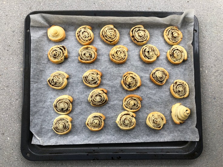 Place in the oven according to the directions of the puff pastry pack (mine was approx. 15-20 minutes). Remove from the oven when golden brown, let cool off slightly and offer to your guests (or enjoy yourself)! Tada!
