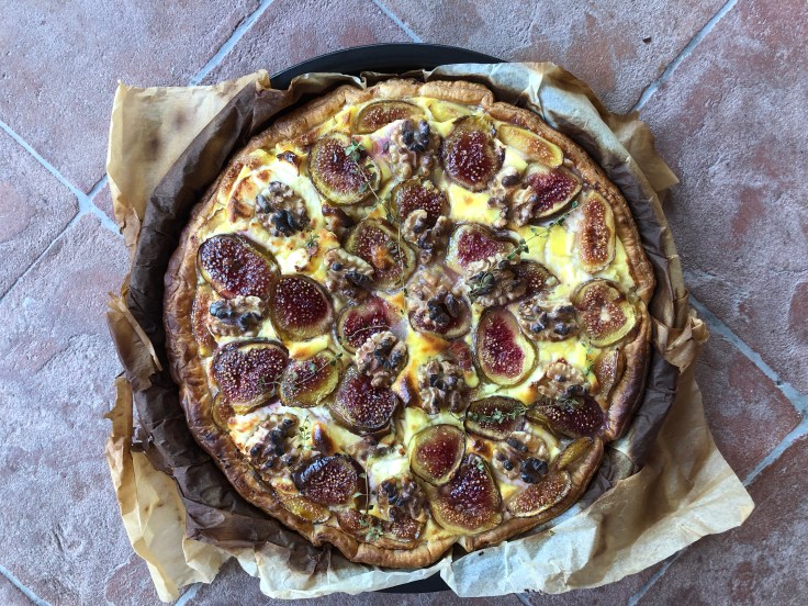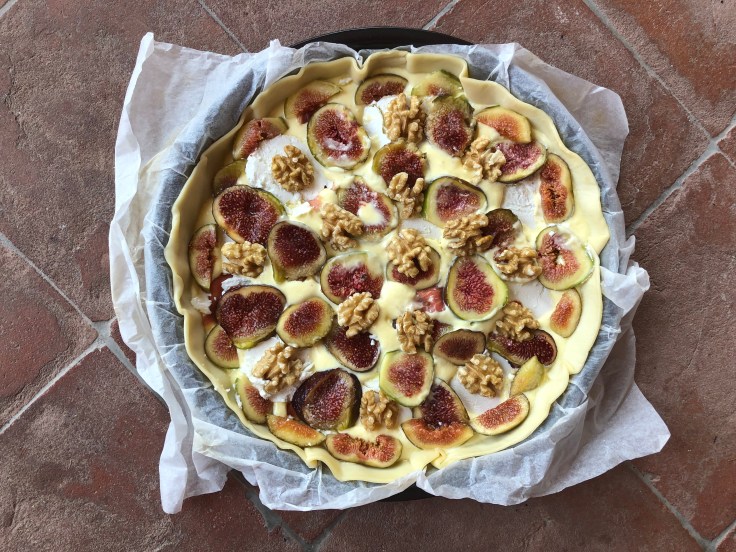 We are enjoying our lovely family vacation in the beautiful house of my in-laws in Tuscany. They not only have a great pool, donkeys, a tractor (yes, all the things my little one adores), but also fig trees in the garden. And lucky enough – we just harvested the last figs of the season! So what else could I have done than directly prepare a meal with them included?