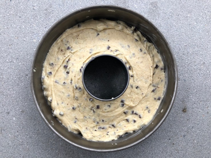 Pre-heat the oven to 180°C (oven set to air circulation). Butter and flour a bundt cake baking tin.
