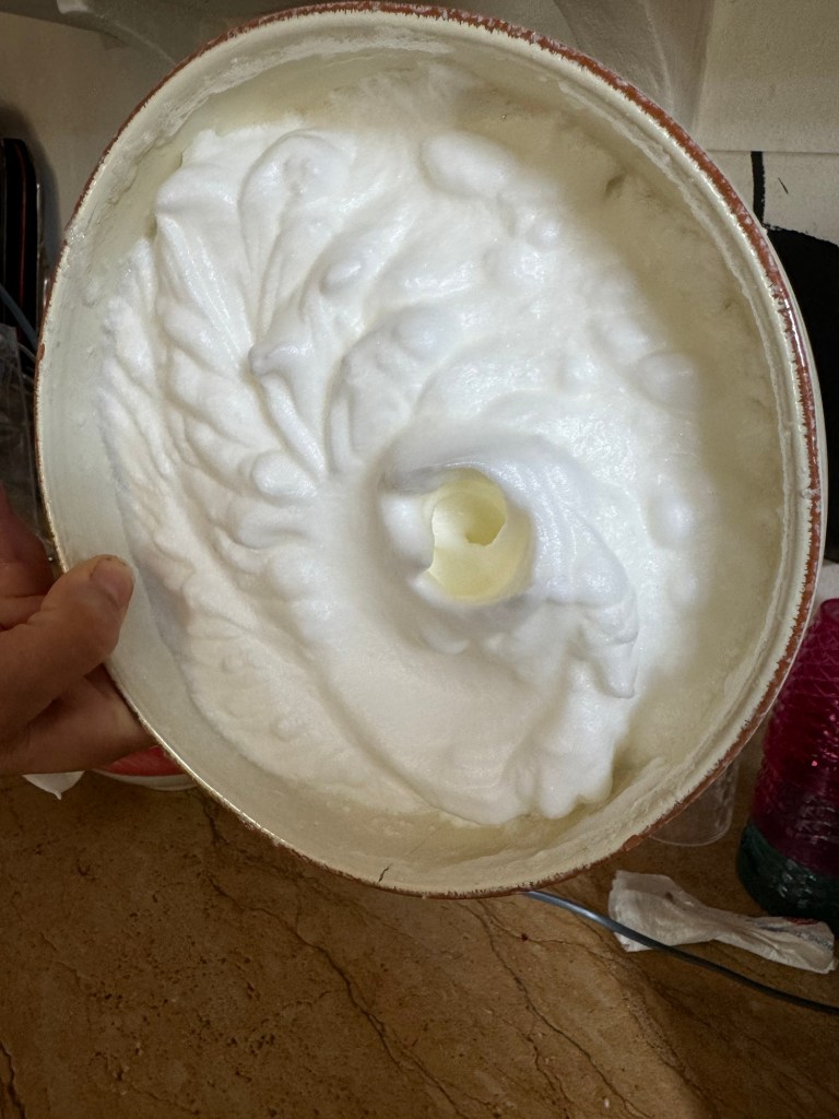 Now beat the egg whites until stiff and set aside.